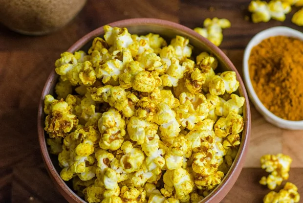 ШАГ 3 Когда попкорн начнет взрываться, задержать дыхание и всыпать специи, снова накрыть крышкой. Делать это нужно быстро и осторожно, пары специй могут обжечь дыхательные пути. Потряхивать сковороду, пока попкорн не перестанет щелкать.