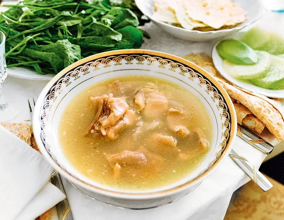 ШАГ 3 Продолжать варить хаш на медленном огне без соли, не допуская сильного кипения, снимая пену, пока мясо не будет отделяться от костей и рубцы не станут мягкими.