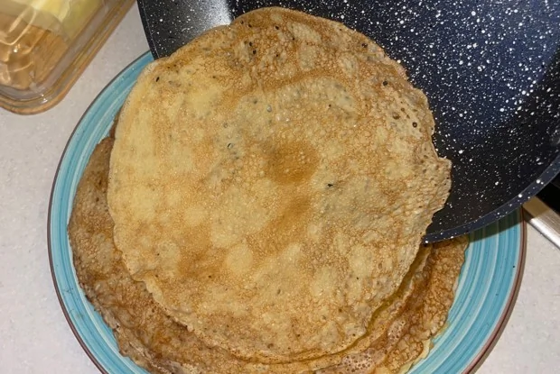 Спустя 2–3 минуты следует перевернуть блин и выпекать его еще 1–2 минуты.