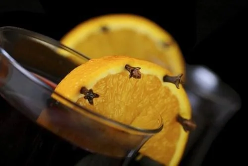 ШАГ 2 Вино подогреть и добавить гвоздику, корицу, мед, апельсин, перец и соль. Процедить и подавать.