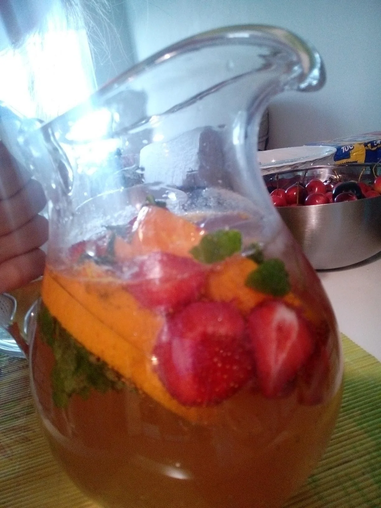 ШАГ 2 В него же отправить оставшиеся корки цитрусовых, клубнику, веточки мяты и тархуна.
