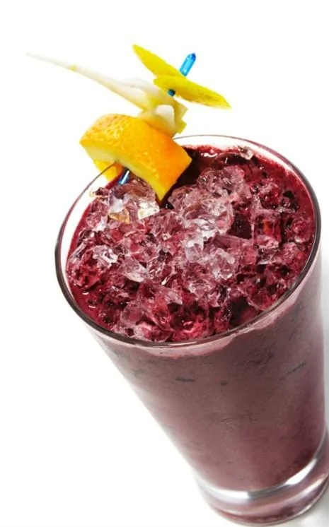 ШАГ 3 Наполнить стакан толченым пищевым льдом, влить смородиновый и лимонный соки и сахарный сироп.