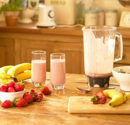 ШАГ 1 Измельчить банан в блендере, добавить ягоды и взбить.
