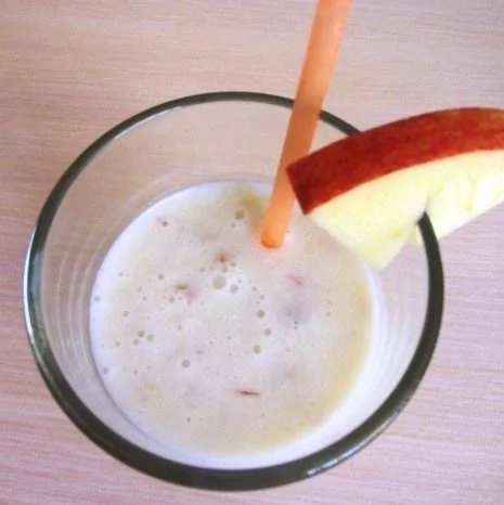 ШАГ 2 Груши очистить от шкурки и сердцевин и нарезать кусочками. Добавить кефир, молоко, миндальную массу и сахар.