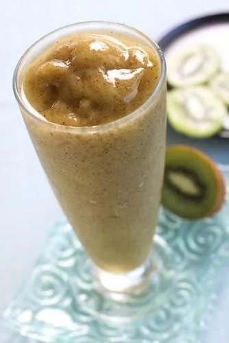 ШАГ 3 Сложить фрукты и лед в блендер, добавить фруктозу и взбить на большой скорости.