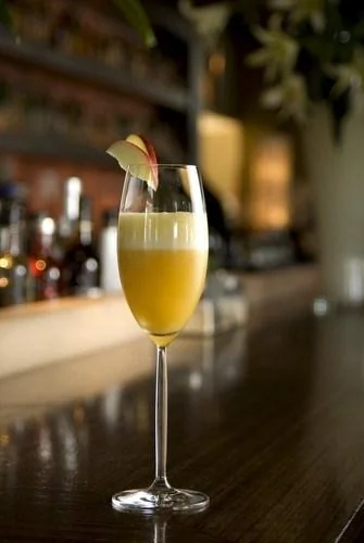ШАГ 3 Охлажденное просекко вылить в кувшин, добавить холодное персиковое пюре и быстро смешать.
