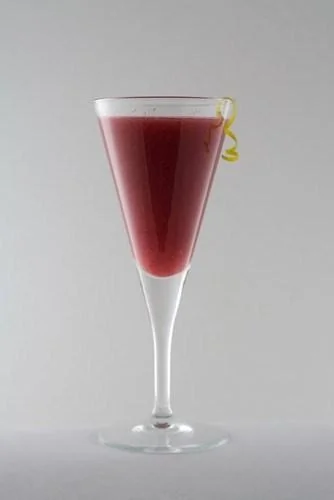 ШАГ 3 На одну порцию коктейля в бокал для шампанского положите 2 столовые ложки красносмородинового пюре и влейте шампанское. Сразу подавайте.