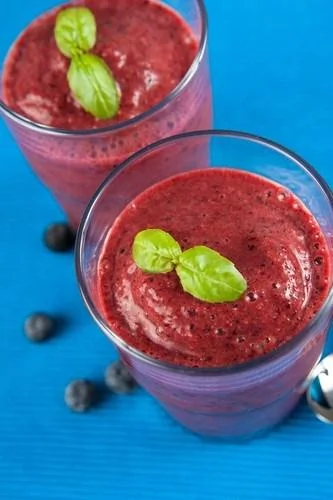 ШАГ 1 В блендере смешайте очищенный и нарезанный кусочками банан, малину, чернику, мед, корицу, яблочный сок и лед. Взбейте до однородного состояния и сразу подавайте.