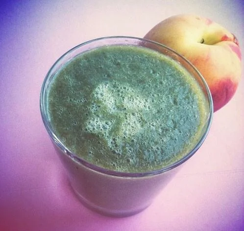 ШАГ 1 Из половины лимона выжмите сок. Персик и яблоко очистите от кожицы и косточек. Смешайте все ингредиенты в блендере до однородного густого коктейля.