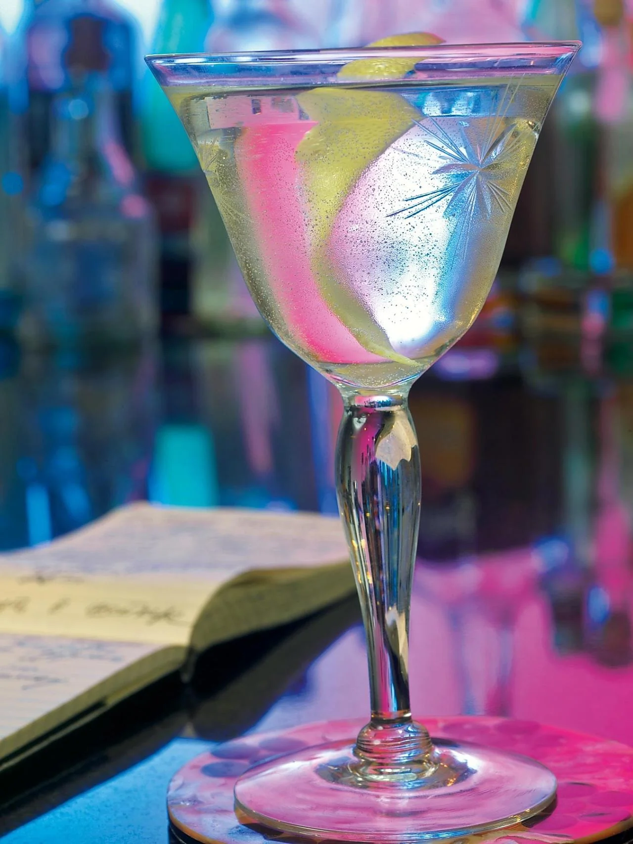 ШАГ 2 Перелить коктейль через стрейнер (он же барное ситечко) в охлажденный коктейльный бокал «Мартини».