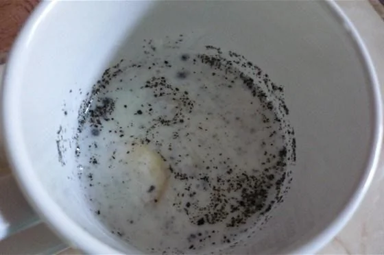 ШАГ 1 В высоком стакане или бокале смешайте йогурт с молоком.