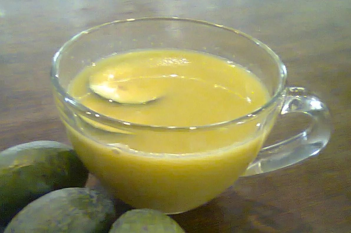 ШАГ 2 Выжмите сок из апельсинов, получится примерно 150 мл фреша. Вылейте сок в блендер к фейхоа и взбейте.