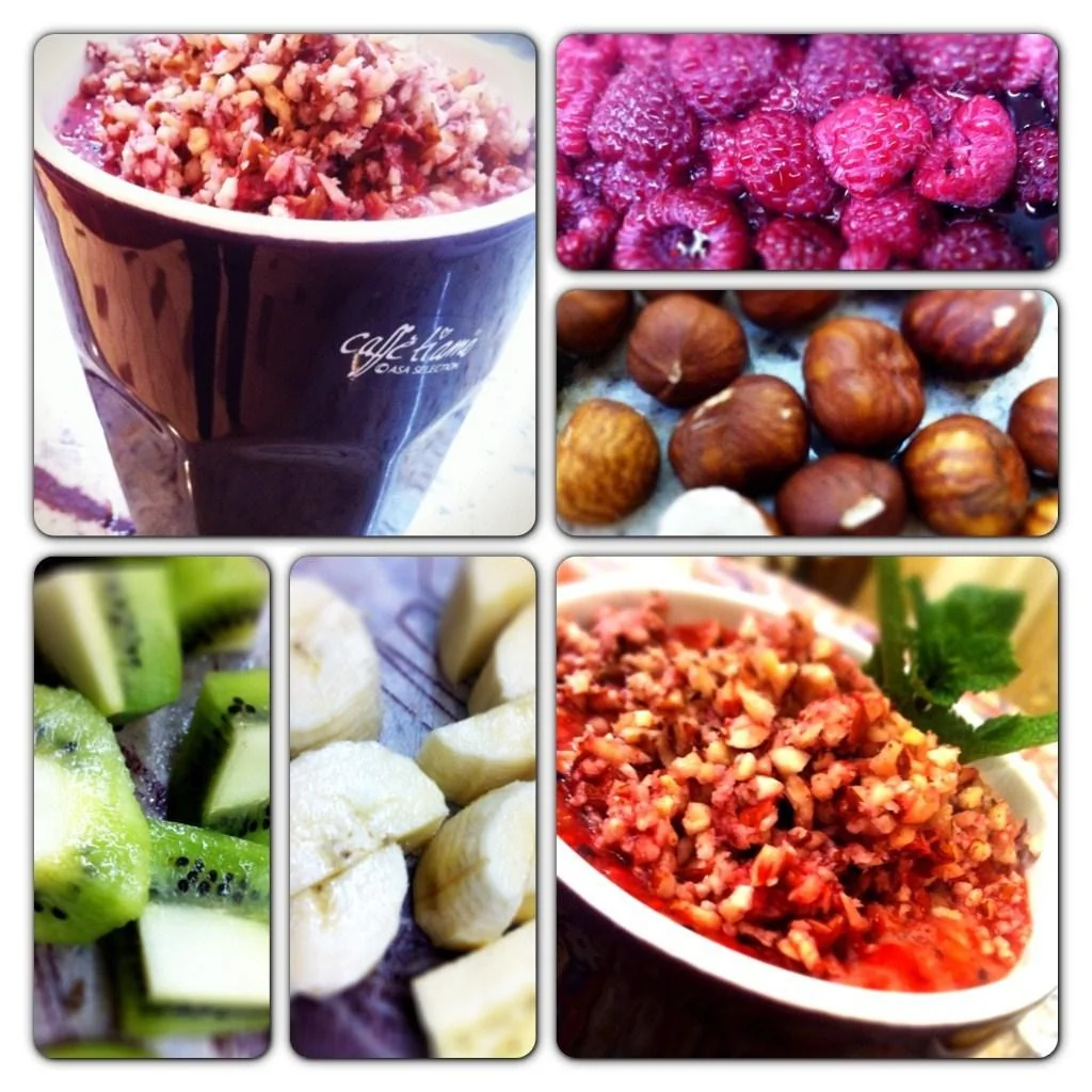 ШАГ 1 Пюрировать фрукты в блендере, предварительно порезав кубиками, кроме малины.