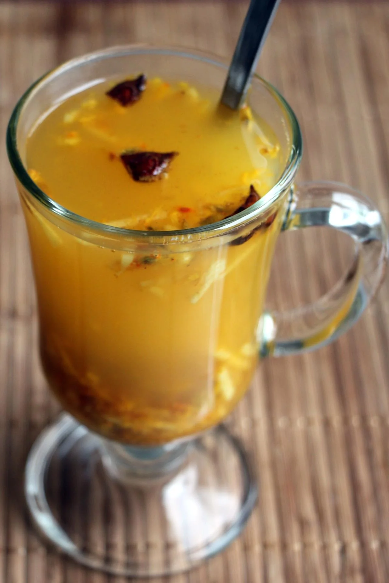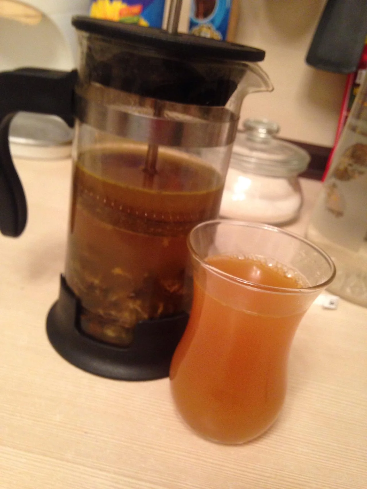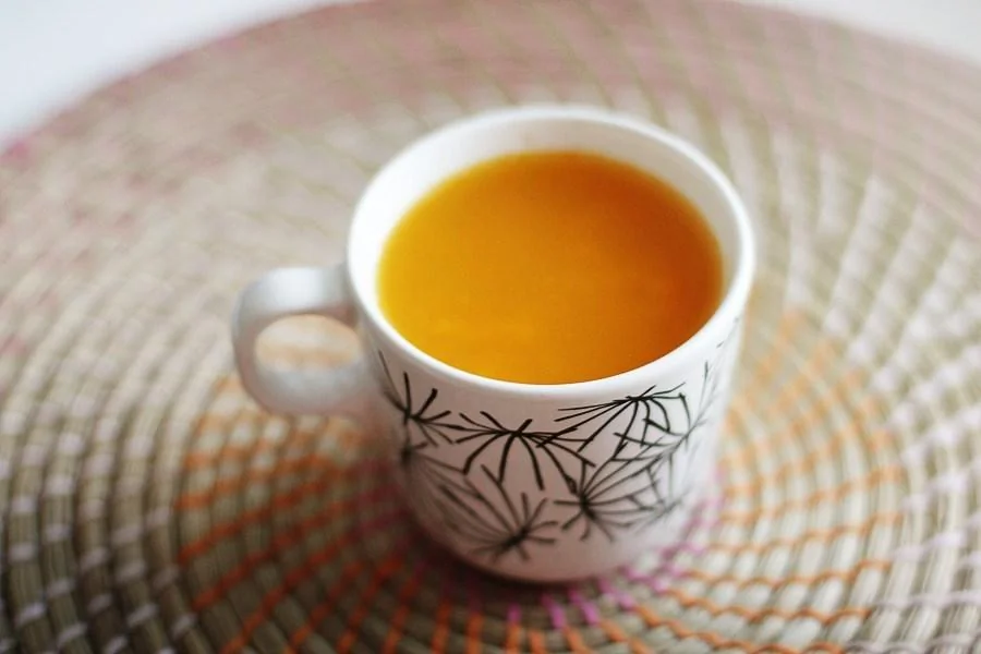 ШАГ 2 В стакан положить смесь из имбиря и облепихи. Добавить звездочку бадьяна и палочку корицы, мед по вкусу. Залить кипятком. Дать настоятся 5–7 минут.