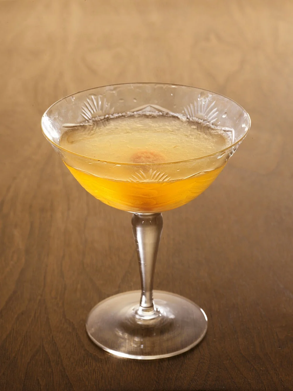 ШАГ 2 Перелить через стрейнер в охлажденный коктейльный бокал. Бросить коктейльную вишню.