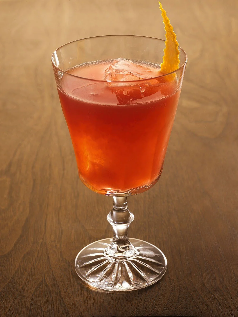 ШАГ 2 Перелить через стрейнер в высокий бокал с небольшим количеством льда в кубиках. Украсить лентой лимонной или апельсиновой цедры.