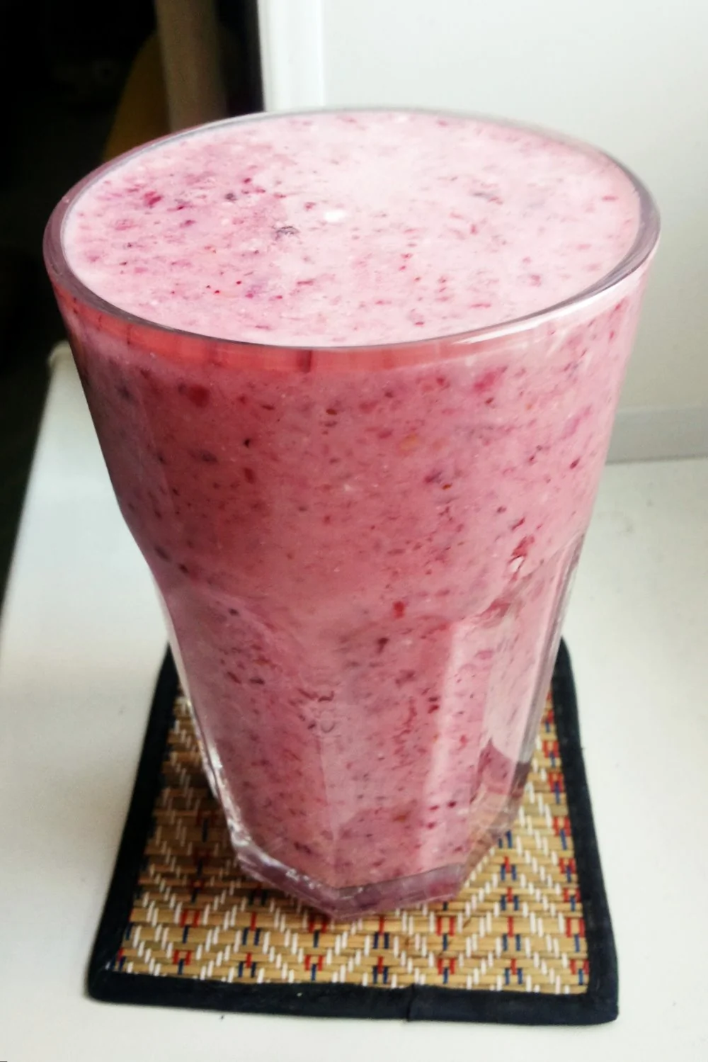 ШАГ 3 Добавить к бруснично-ореховой смеси молоко, апельсиновый сок и мед. Все хорошо взбить и разлить по стаканам.
