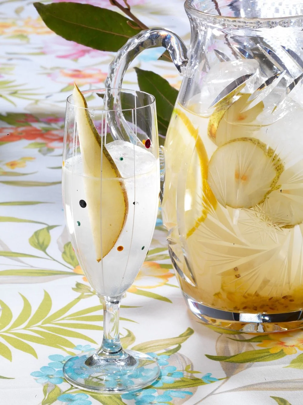 ШАГ 3 Подавать в бокалах со льдом. Украсить дольками груши и лимона.
