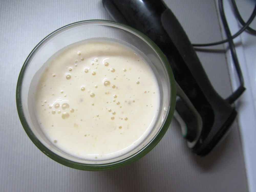 ШАГ 3 Блендером размешать до появления пенки. И перелить в бокалы.