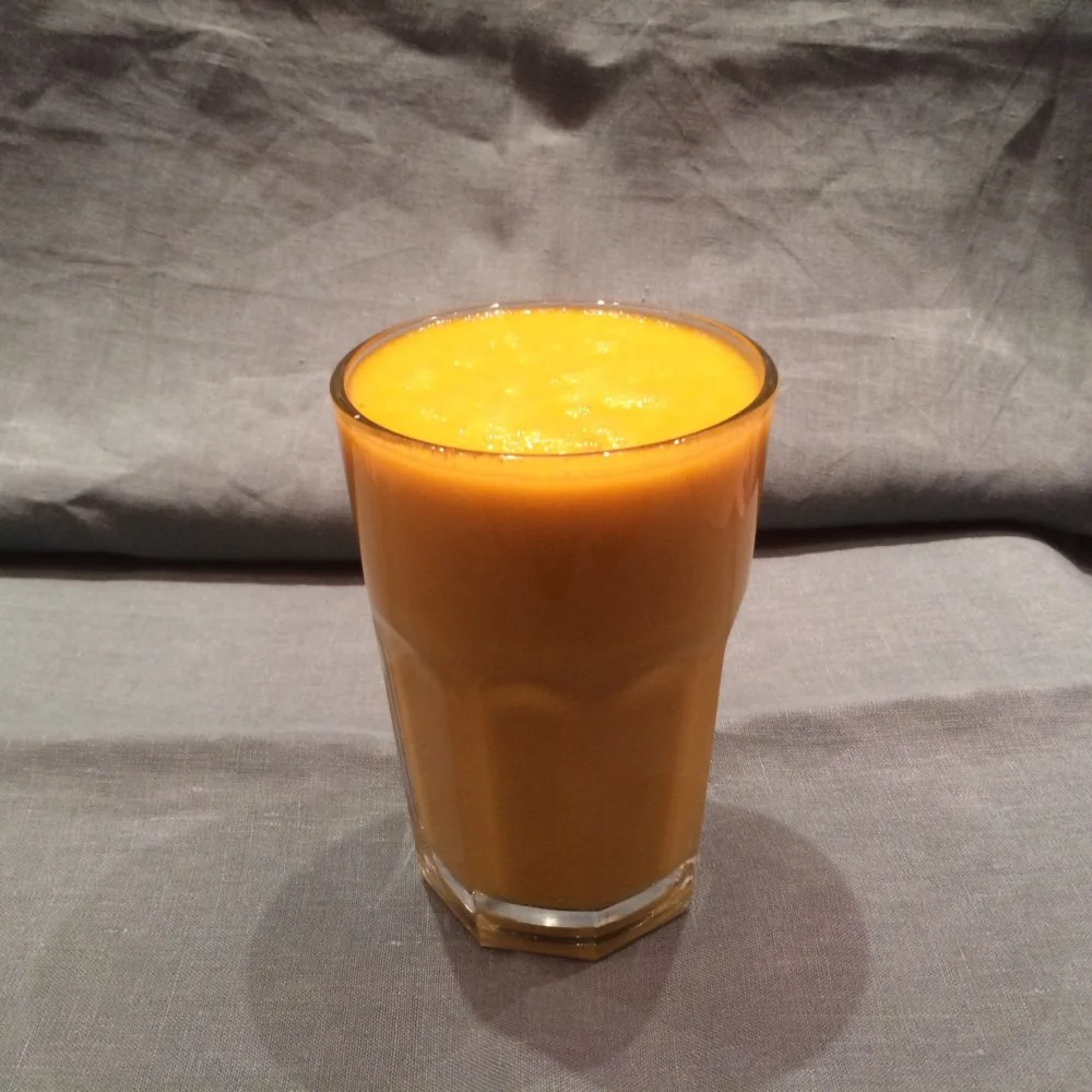 ШАГ 1 Два банана половинку очищенного ананаса с удаленной сердцевиной залейте свежевыжатым морковным соком.