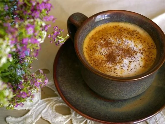 ШАГ 2 Смешать сахар и корицу, нагреть на медленном огне, постоянно помешивая. Влить молоко и кофе, медленно довести до кипения.
