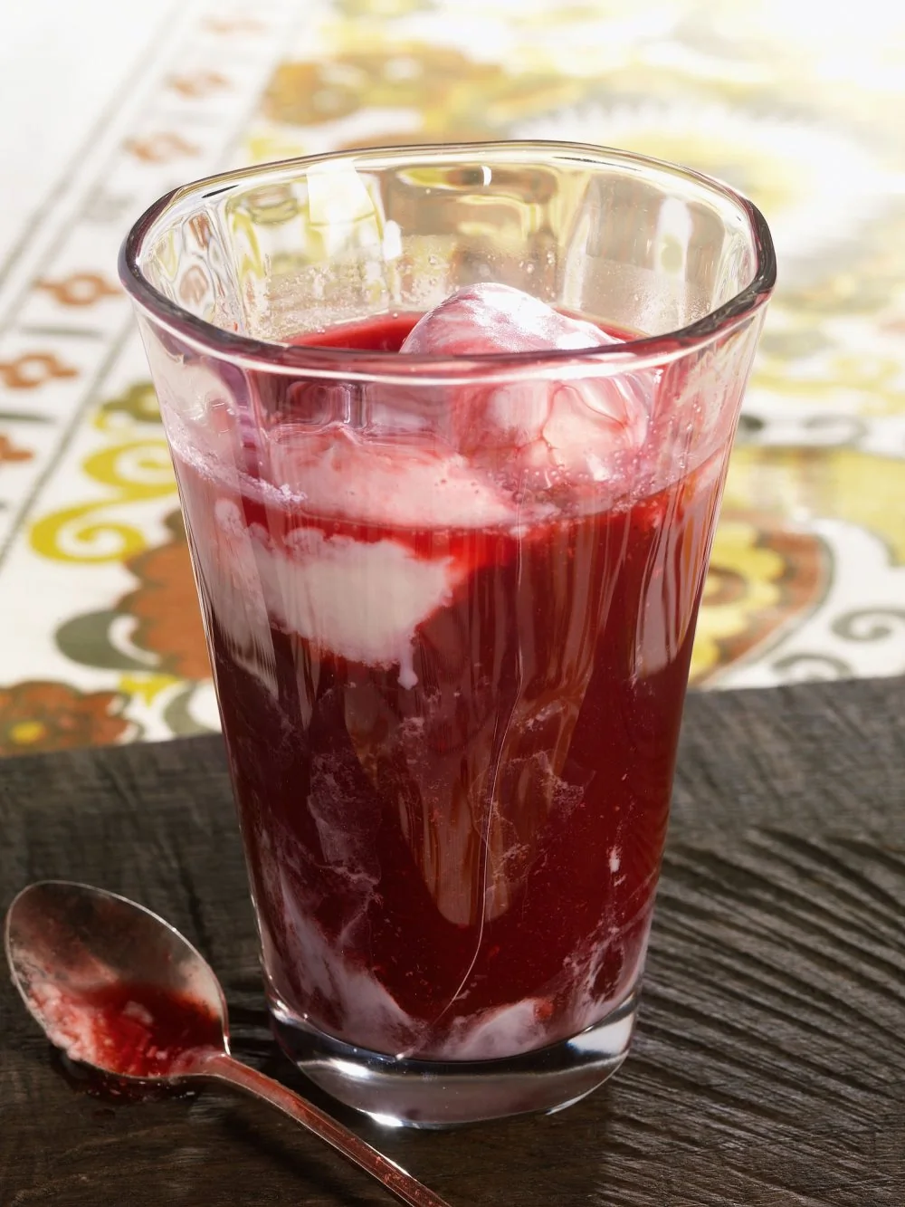 ШАГ 3 В бокалы положить по шарику мороженого, залить теплым киселем.