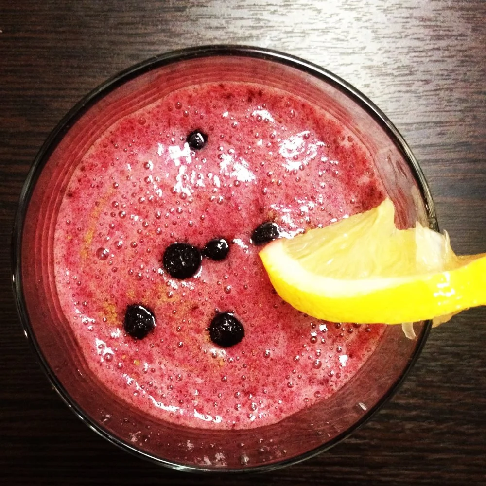 ШАГ 2 Все ингредиенты загрузить в блендер и перемешать 1–2 минуты. Готовый смузи украсить ягодами черники и долькой лимона!