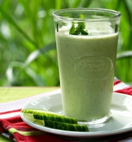 ШАГ 3 Соединить всю зеленую массу с кефиром, добавить соль и перец, взбить в блендере.