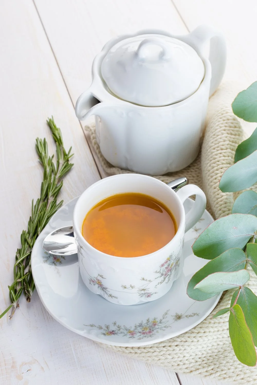 ШАГ 2 Затем процеживаем и выливаем в кувшин. Перед подачей украшаем веточкой свежего розмарина.