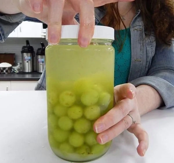 ШАГ 3 Закрыть банку крышкой и поставить в холодильник на 12 часов, чтобы виноград мог в себя впитать вино.