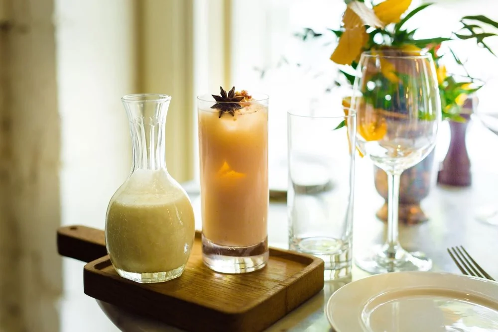 ШАГ 1 Ром, ликер, сироп и кефир взбить в шейкере со льдом. Отфильтровать через хайбол на лед.