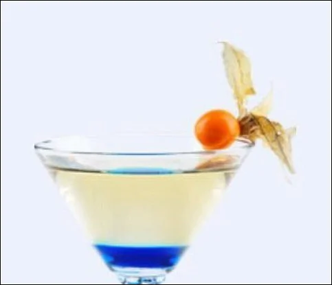 ШАГ 2 В коктейльный бокал налить ликер Blue Curacao.