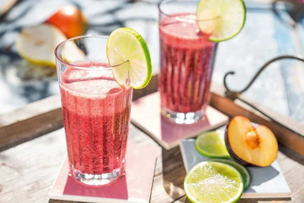 ШАГ 2 Груши и сливы помыть и удалить косточки. Все ингредиенты смешать в блендере.