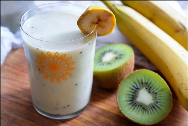 Ингредиенты для приготовления Смузи из банана и киви на молоке: