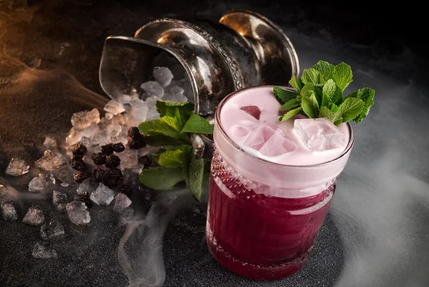 ШАГ 1 Все ингредиенты поместить в шейкер, вместе с мятой сделать шейк, отделить от льда и сделать драй шейк.