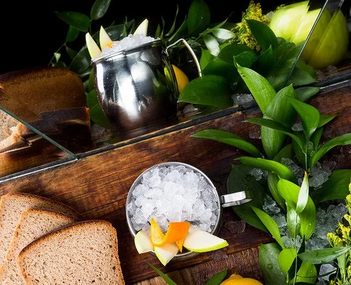 ШАГ 1 В кружке промять мадлером апельсин и лимон, удалить их. Добавить сахарный сироп, ликер и водку.
