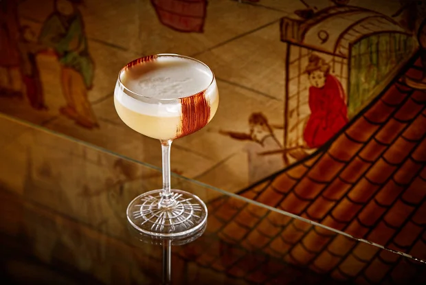 ШАГ 1 Все ингредиенты взбить в шейкере и процедить через сито в охлаждённый бокал Шале.