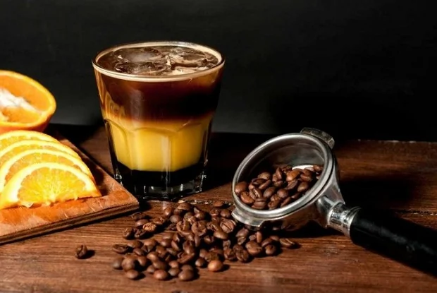 ШАГ 4 Сверху добавить кофе, стараясь осторожно вливать на кубик льда, 3й слой.