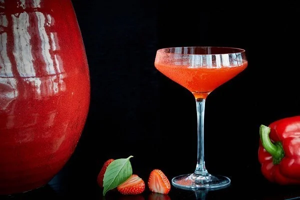 ШАГ 3 Украсить бокал пудрой из клубники и болгарского перца.