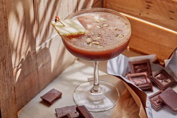 ШАГ 2 Смешайте в шейкере растопленный шоколад, сидр и пряный ром.