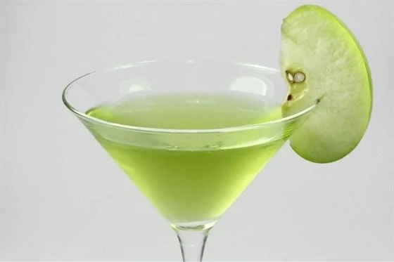 ШАГ 3 Разлейте в 2 бокала для мартини и украсьте кусочками яблока.