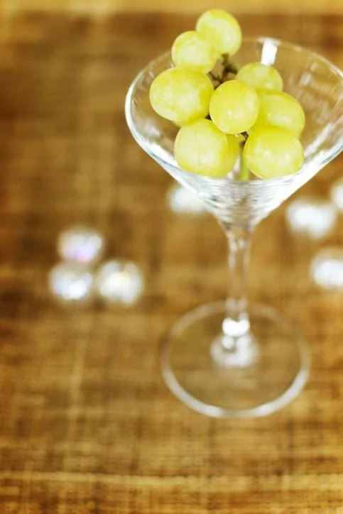 ШАГ 4 Разлейте в охлажденные бокалы для мартини и украсьте виноградом.