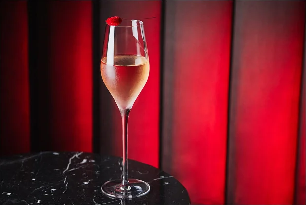 ШАГ 3 Процеженную водку, раствор лимонной кислоты и сироп смешать в смесительном бокале и перелить в бокал флюте.