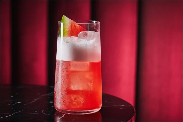 Ликер «Амаретто» Лимонный сок Сироп фруктозы Вишневый сок Экстракт квиллайи Арбуз Лед главная Напитки Коктейли Коктейли алкогольные