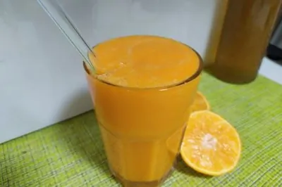 Смузи апельсин-морковь Добавил:admin 29 июля 2025 0 Калорийность блюда: 134 ккал * Содержит жиров: 1 грамм Содержит белков: 4 грамм Содержит углеводов: 30 грамм *Расчёт для сырых продуктов Смузи апельсин-морковь Время приготовления: 15 минут Количество порций: 1 Ингредиенты для приготовления Смузи апельсин-морковь: Мед 1 чайная ложка Вода 200 мл Морковь 1 штука Апельсины 1 штука Куркума ½ чайные ложки Молотый имбирь щепотка