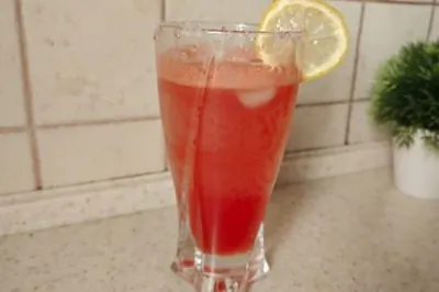 ШАГ 6 Выдавить пару ложек лимонного сока, добавить сок арбуза и хорошо перемешать.