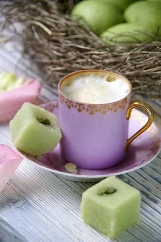 ШАГ 5 Снять с огня, добавить молока и сразу разливать в кружки, бросив в каждую по половинке печеного яблока.