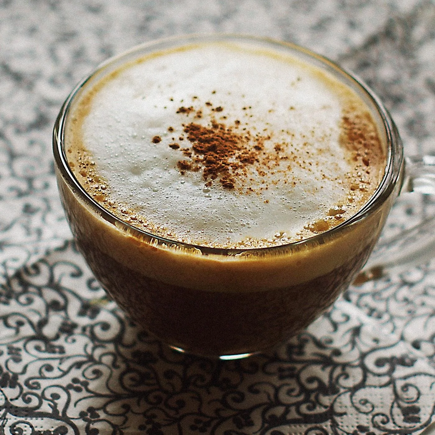 ШАГ 5 В объемные кружки следует наливать в начале экспресс-кофе по мере готовности, а затем сверху долить молочную пену и для вкуса посыпать корицей.