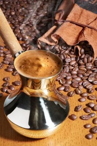 ШАГ 3 Верните турку на маленький огонь и снова дайте кофе подняться. Аккуратно разлейте оставшийся кофе по чашкам, оставив осадок в турке. Сразу подавайте.