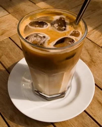 ШАГ 3 Наполните бокалы колотым льдом и залейте кофе. По желанию добавьте немного ликера и подавайте.